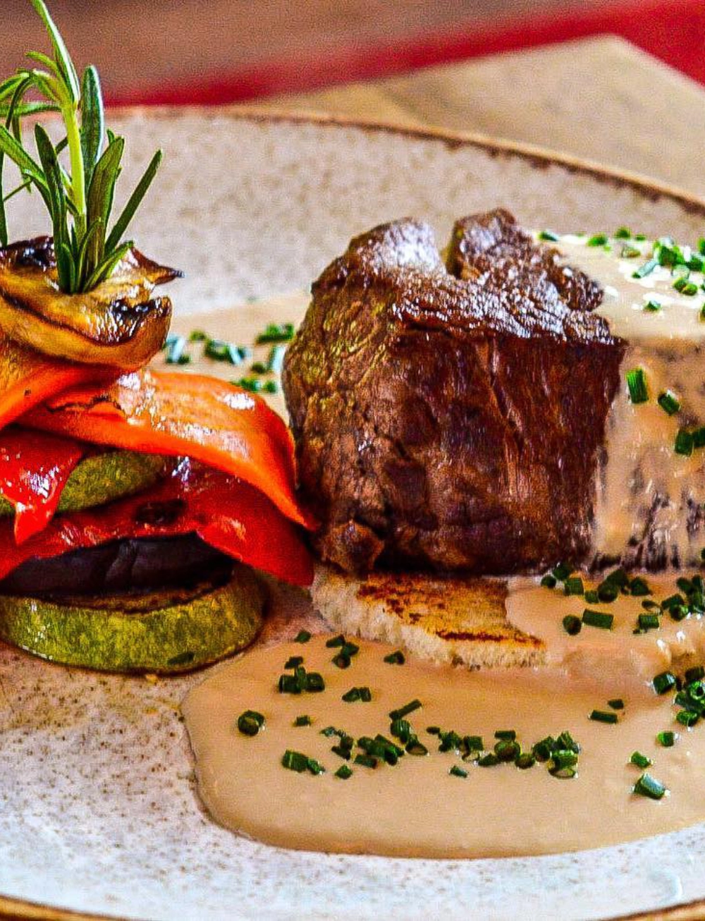 marinirani biftek, zeleni biber, crno vino, krompirići